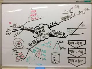 写真のようにみんなの顔をみながら、話している内容をリアルタイムマインドマップで
